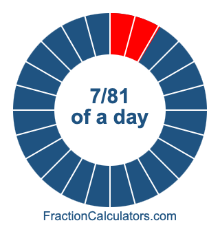 Here we will show you how to calculate exactly how many hours, minutes, and seconds there are in 7/81 of a day. We will also illustrate what 7/81 of a day looks like on a pie chart.