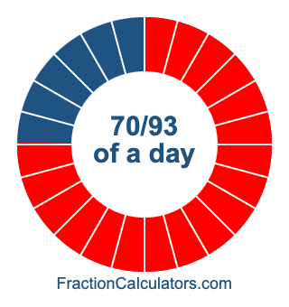 Here we will show you how to calculate exactly how many hours, minutes, and seconds there are in 70/93 of a day. We will also illustrate what 70/93 of a day looks like on a pie chart.