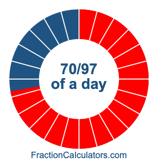 Here we will show you how to calculate exactly how many hours, minutes, and seconds there are in 70/97 of a day. We will also illustrate what 70/97 of a day looks like on a pie chart.