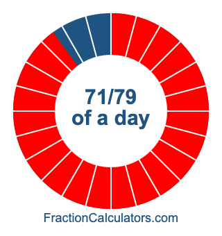 Here we will show you how to calculate exactly how many hours, minutes, and seconds there are in 71/79 of a day. We will also illustrate what 71/79 of a day looks like on a pie chart.