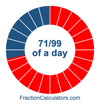 Here we will show you how to calculate exactly how many hours, minutes, and seconds there are in 71/99 of a day. We will also illustrate what 71/99 of a day looks like on a pie chart.