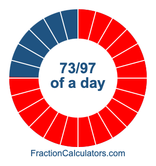 Here we will show you how to calculate exactly how many hours, minutes, and seconds there are in 73/97 of a day. We will also illustrate what 73/97 of a day looks like on a pie chart.