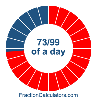 Here we will show you how to calculate exactly how many hours, minutes, and seconds there are in 73/99 of a day. We will also illustrate what 73/99 of a day looks like on a pie chart.