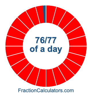 Here we will show you how to calculate exactly how many hours, minutes, and seconds there are in 76/77 of a day. We will also illustrate what 76/77 of a day looks like on a pie chart.