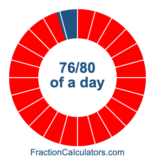 Here we will show you how to calculate exactly how many hours, minutes, and seconds there are in 76/80 of a day. We will also illustrate what 76/80 of a day looks like on a pie chart.
