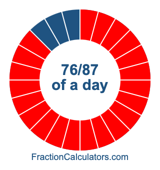 Here we will show you how to calculate exactly how many hours, minutes, and seconds there are in 76/87 of a day. We will also illustrate what 76/87 of a day looks like on a pie chart.