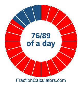 Here we will show you how to calculate exactly how many hours, minutes, and seconds there are in 76/89 of a day. We will also illustrate what 76/89 of a day looks like on a pie chart.