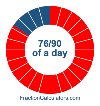Here we will show you how to calculate exactly how many hours, minutes, and seconds there are in 76/90 of a day. We will also illustrate what 76/90 of a day looks like on a pie chart.