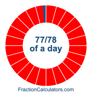 Here we will show you how to calculate exactly how many hours, minutes, and seconds there are in 77/78 of a day. We will also illustrate what 77/78 of a day looks like on a pie chart.