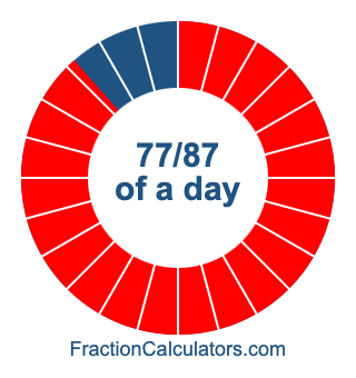 Here we will show you how to calculate exactly how many hours, minutes, and seconds there are in 77/87 of a day. We will also illustrate what 77/87 of a day looks like on a pie chart.