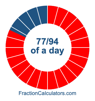 Here we will show you how to calculate exactly how many hours, minutes, and seconds there are in 77/94 of a day. We will also illustrate what 77/94 of a day looks like on a pie chart.