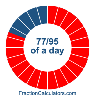 Here we will show you how to calculate exactly how many hours, minutes, and seconds there are in 77/95 of a day. We will also illustrate what 77/95 of a day looks like on a pie chart.