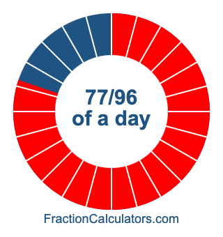 Here we will show you how to calculate exactly how many hours, minutes, and seconds there are in 77/96 of a day. We will also illustrate what 77/96 of a day looks like on a pie chart.