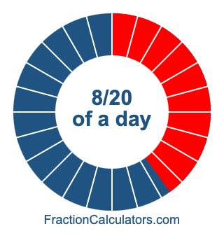 Here we will show you how to calculate exactly how many hours, minutes, and seconds there are in 8/20 of a day. We will also illustrate what 8/20 of a day looks like on a pie chart.