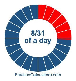 Here we will show you how to calculate exactly how many hours, minutes, and seconds there are in 8/31 of a day. We will also illustrate what 8/31 of a day looks like on a pie chart.