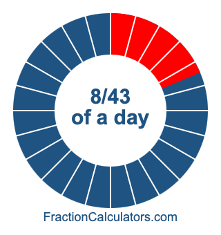 Here we will show you how to calculate exactly how many hours, minutes, and seconds there are in 8/43 of a day. We will also illustrate what 8/43 of a day looks like on a pie chart.