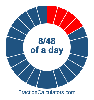 Here we will show you how to calculate exactly how many hours, minutes, and seconds there are in 8/48 of a day. We will also illustrate what 8/48 of a day looks like on a pie chart.