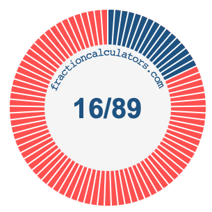 In addition, we will also illustrate the fraction 16/89 on a pie chart and 16/89 as a percent on a pie chart.