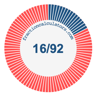 What is 16/92 as a percent? Here we will explain and show you how to calculate and convert 16/92 to a percent.
