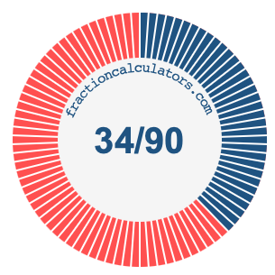 In addition, we will also illustrate the fraction 34/90 on a pie chart and 34/90 as a percent on a pie chart.