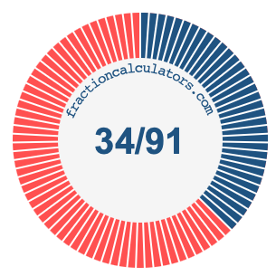 In addition, we will also illustrate the fraction 34/91 on a pie chart and 34/91 as a percent on a pie chart.