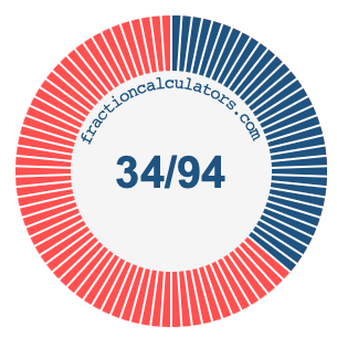 The illustrations below show you how 34/94 and 36.17% divide a pie chart differently, but cover the same area because they are the same.