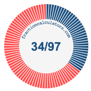 In addition, we will also illustrate the fraction 34/97 on a pie chart and 34/97 as a percent on a pie chart.