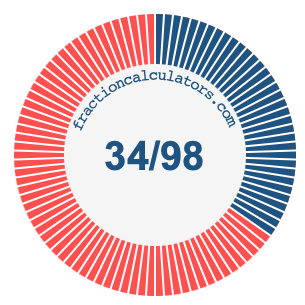 In addition, we will also illustrate the fraction 34/98 on a pie chart and 34/98 as a percent on a pie chart.