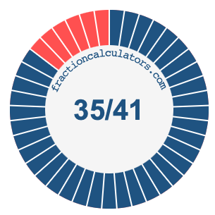 In addition, we will also illustrate the fraction 35/41 on a pie chart and 35/41 as a percent on a pie chart.