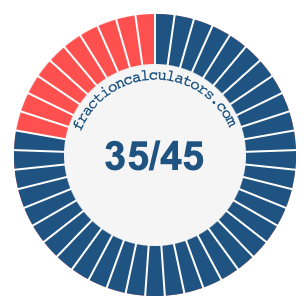 In addition, we will also illustrate the fraction 35/45 on a pie chart and 35/45 as a percent on a pie chart.