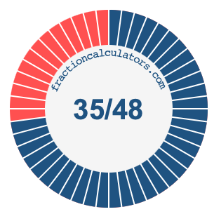 In addition, we will also illustrate the fraction 35/48 on a pie chart and 35/48 as a percent on a pie chart.