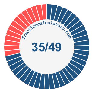 In addition, we will also illustrate the fraction 35/49 on a pie chart and 35/49 as a percent on a pie chart.