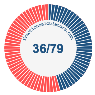 In addition, we will also illustrate the fraction 36/79 on a pie chart and 36/79 as a percent on a pie chart.