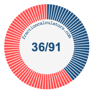 In addition, we will also illustrate the fraction 36/91 on a pie chart and 36/91 as a percent on a pie chart.