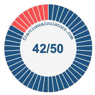 In addition, we will also illustrate the fraction 42/50 on a pie chart and 42/50 as a percent on a pie chart.