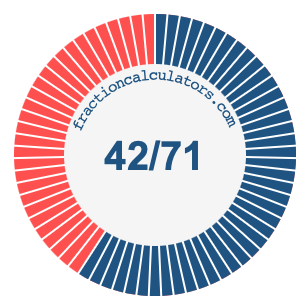 In addition, we will also illustrate the fraction 42/71 on a pie chart and 42/71 as a percent on a pie chart.