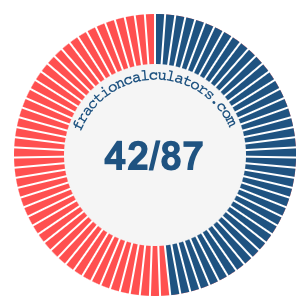In addition, we will also illustrate the fraction 42/87 on a pie chart and 42/87 as a percent on a pie chart.