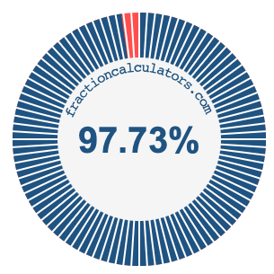 The illustrations below show you how 43/44 and 97.73% divide a pie chart differently, but cover the same area because they are the same.