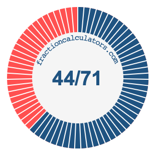 In addition, we will also illustrate the fraction 44/71 on a pie chart and 44/71 as a percent on a pie chart.