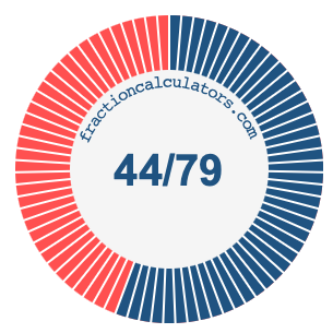 In addition, we will also illustrate the fraction 44/79 on a pie chart and 44/79 as a percent on a pie chart.
