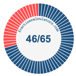 In addition, we will also illustrate the fraction 46/65 on a pie chart and 46/65 as a percent on a pie chart.