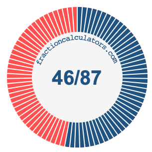 In addition, we will also illustrate the fraction 46/87 on a pie chart and 46/87 as a percent on a pie chart.