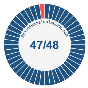 In addition, we will also illustrate the fraction 47/48 on a pie chart and 47/48 as a percent on a pie chart.