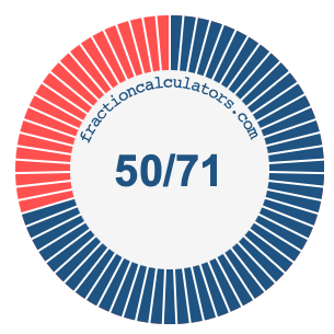 In addition, we will also illustrate the fraction 50/71 on a pie chart and 50/71 as a percent on a pie chart.
