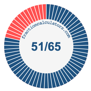 In addition, we will also illustrate the fraction 51/65 on a pie chart and 51/65 as a percent on a pie chart.