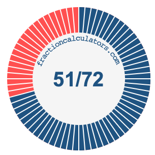 The illustrations below show you how 51/72 and 70.83% divide a pie chart differently, but cover the same area because they are the same.