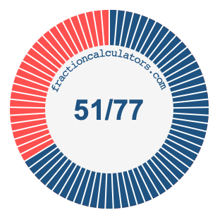 The illustrations below show you how 51/77 and 66.23% divide a pie chart differently, but cover the same area because they are the same.