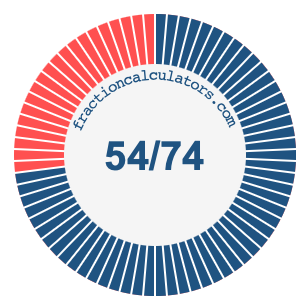In addition, we will also illustrate the fraction 54/74 on a pie chart and 54/74 as a percent on a pie chart.
