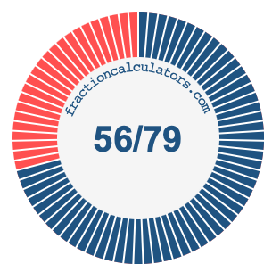 In addition, we will also illustrate the fraction 56/79 on a pie chart and 56/79 as a percent on a pie chart.