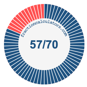 In addition, we will also illustrate the fraction 57/70 on a pie chart and 57/70 as a percent on a pie chart.